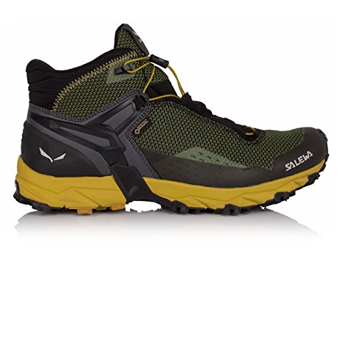 Binding : Shoes Product Description Salewa Ultra Flex Mid GTX Mountain Training Shoes The Ultra Flex Mid GTX is a men's waterproof, breathable mid-cut shoe designed for speed hiking and high-intensity mountain training. Built around Michelin's technical performance outsole, developed exclusively with SALEWA, the special rubber compound features a design with grooves and sculptures for outstanding traction and stability over hard and uneven terrain. Mesh Upper The Salewa Ultra Flex Mid GTX Mountain Training Shoes is constructed with a mesh upper, offering maximum ventilation, keeping your feet feeling cool and comfortable throughout a long and hard run. The Gore-Tex system ensures you have dry feet no matter the weather. The Ortholite insole also works hard to keep your feet feeling dry and healthy. The 3F Total System ensures the shoe has a stable fit, so you have total control when you need it. The flex collar allows the ankle to have a larger range of motion, this means you have better performance, especially with descents. Michelin Outsole The Michelin outsole with a specially designed tread allows for excellent traction and stability. The tread contains sculptures and grooves which allow you get maximum grip and stability on uneven and rocky terrains. 0