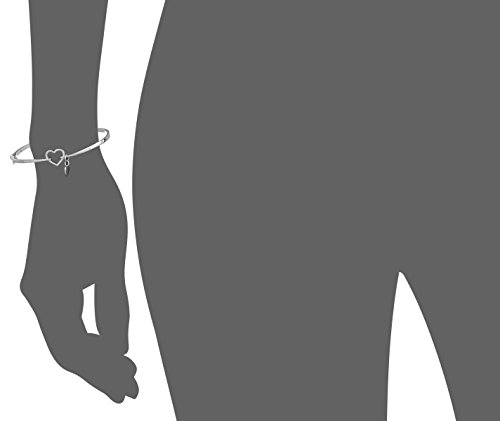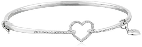 Sterling silver hinged bangle featuring diamond-accented open heart and small accent diamonds along front curve