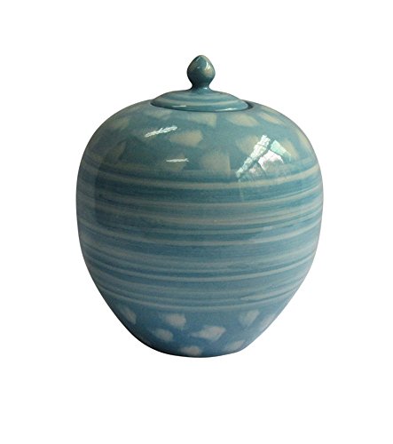 Benzara Beguiling Ceramic Decorative Jar with Lid, Blue and White
