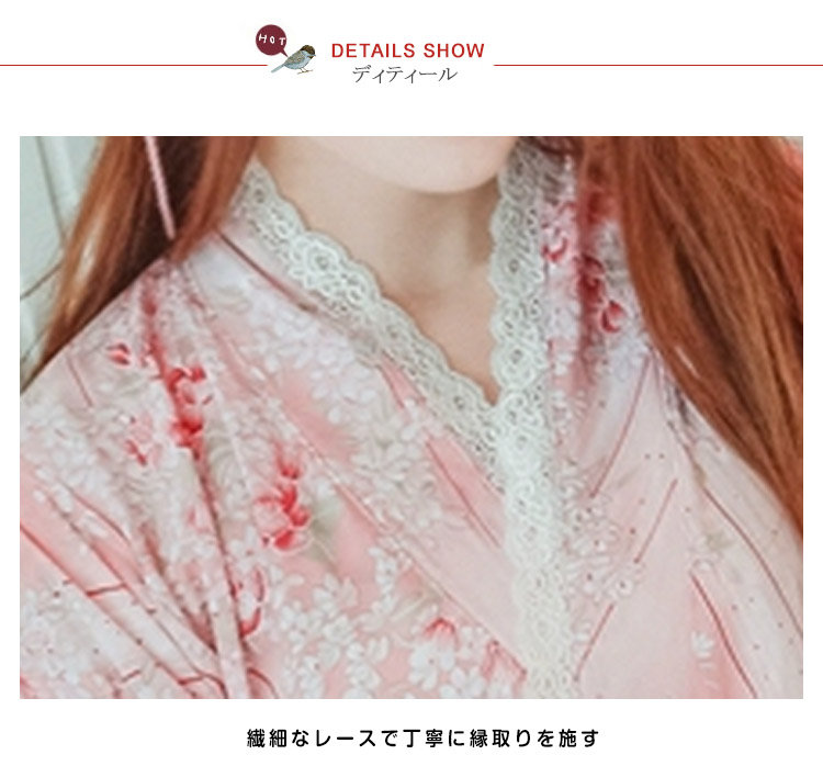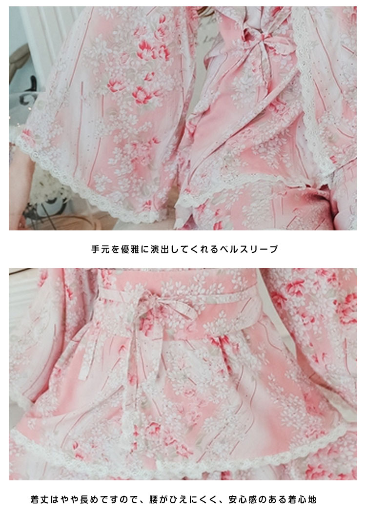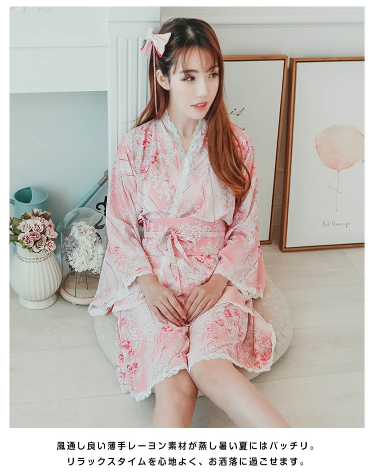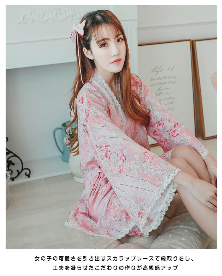 | 夏にバッチリの涼しい素材の甚平パジャマ。キレイな桜が舞い落ちり、お祭りや花火大会の衣装としても◎女の子の可愛さを引き出すスカラップレースで縁取りをし、工夫を凝らせたこだわりの作りが高級感アップ風通し良い薄手レーヨン素材が蒸し暑い夏にはバッチリ。リラックスタイムを心地よく、お洒落に過ごせます。ゆったりビッグシルエットはラフな着こなし◎ 作り帯を加えて、メリハリのあるシルエットをメイク、スタイリッシュアップ | |