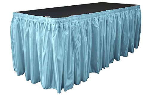 LA Linen Bridal Satin Pleated Table Skirt with 10 Large Clips, 14-Feet by 29-Inch, Blue Light