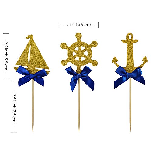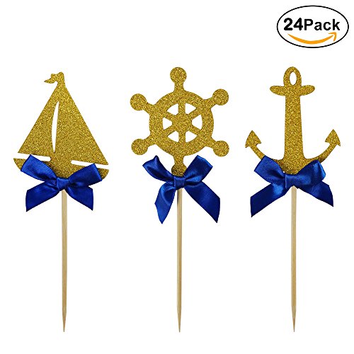 - Nautical Theme Party Favors Decorations Supplies: Nautical cake decorations packaging includes 24 counting of 3 different style, and 8 toppers for each nautical cupcake picks.