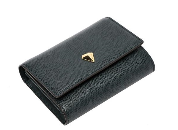 천연 가죽 소재를 활용하여 고급스러우며 세련된 다크그린 컬러에 골드 다이아로 포인트를 준 3단 반지갑입니다.