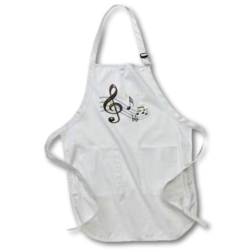 3dRose apr_55502_1 Music Notes Clef, Sixteenth, Quarter Notes, Beamed Notes, Flats & Sharps in Black & Gold Full Length Apron with Pockets, 22 by 30", White