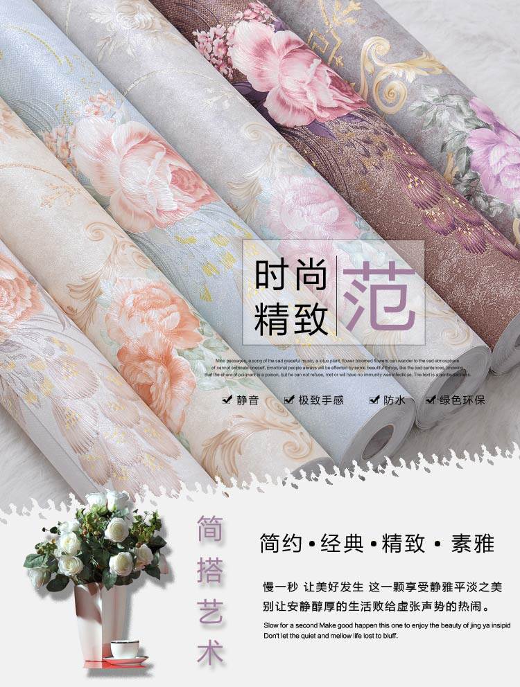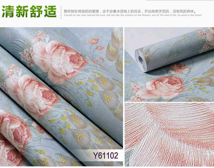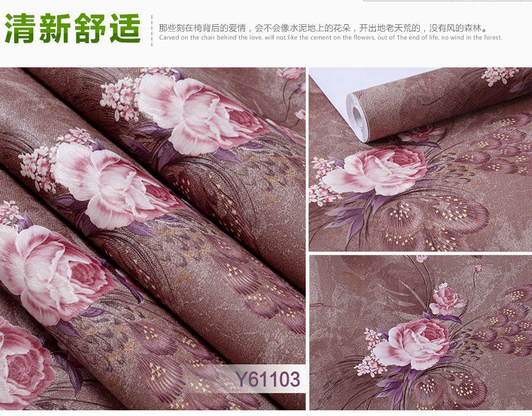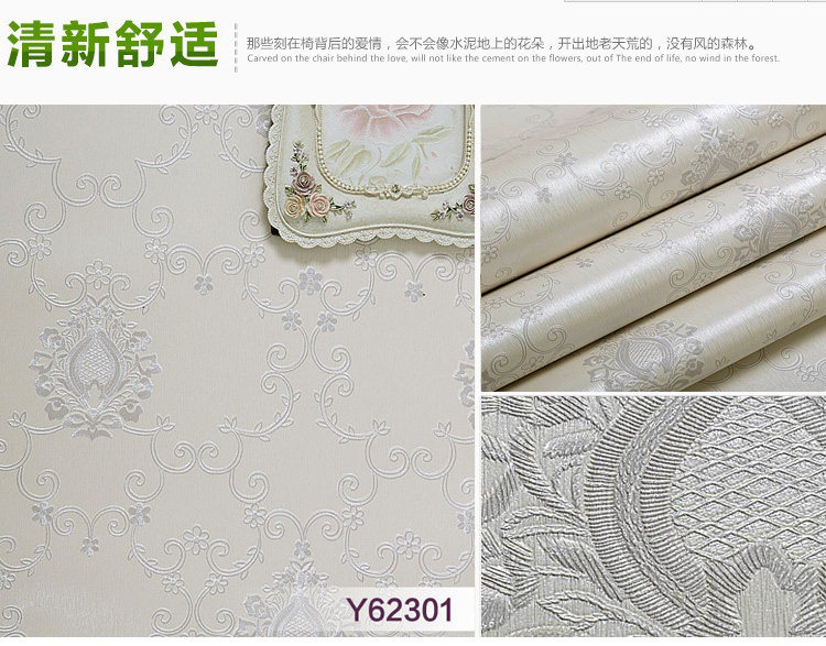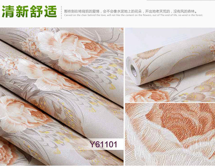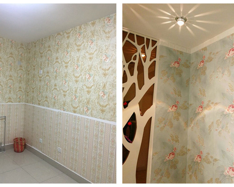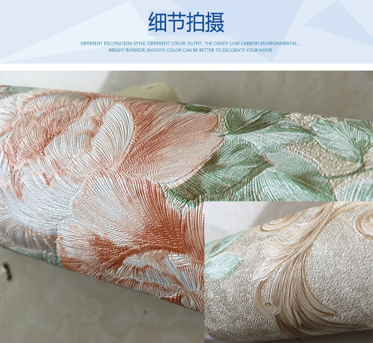 墙纸详情:Wallpaper details:商品规格: 我们的产品是53厘米宽的加厚防霉防潮自粘墙纸不是市面上普通的自粘墙纸Product specification: our product is 53 cm wide thick anti mildew and moisture resistant self adhesive wallpaper is not on the market ordinary self-adhesive wallpaper. 粘性、耐磨、遮盖效果,耐久时间都是经过升级处理的。且已经申请国家专利。Viscosity, wear resistance, cover effect, durability are upgraded after processing. And has applied for national patent.商品价格:标价1件=3米长,能贴1.5平方,2件=3米长,能贴3平方。以此类推。Commodity prices: the price of 1 =3 meters long, can stick to 1.5 square meters, =3 meters long, can stick to 3 square. And so on。商品厚度:约0.35MM厚度Thickness: about 0.35MM thickness使用年限:正常使用长达10---15年Life: normal use up to 10---15 years此款为防霉防潮复合墙纸,粘贴时对接缝请勿重叠。This is a composite wallpaper mildew resistance, paste on the seams do not overlap.