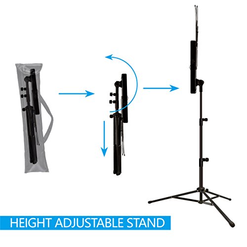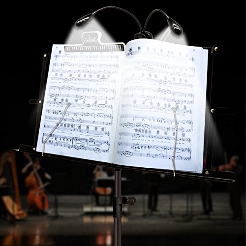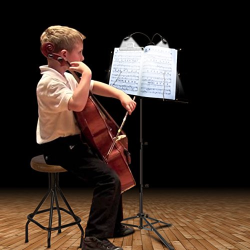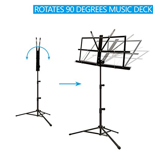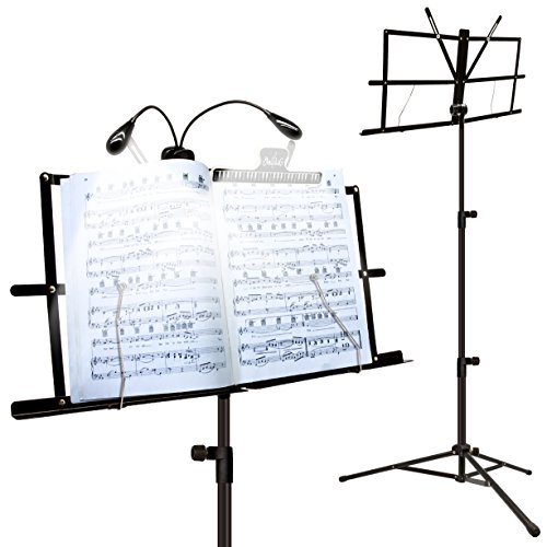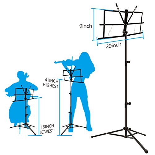 -. Feature : DURABILITY - professional collapsible music stand made of durable and heavy-duty metal. It provides excellent stability and metal sP.R.Ing arm extensions hold music sheets and song books securely in place. / PORTABLE & STABLE-this sheet stand holder belongs to ultra-lightweight style, and a nice bag is used to carry and store so that you can show your wonderful performance anywhere. there is no need to worry about the loading capacity of this conduct music stand with the sturdy metal tripod support legs, which have non-slip rubber caps at the bottom, so just pour 100% concentration on your performance. / METAL TRIPOD SUPPORT LEGS- there is no need to worry about the loading capacity of this conduct music stand with the sturdy metal tripod support legs, which have non-slip rubber caps at the bottom that secure at any height, even with a heavy load of music sheet. / FLEXIBLE AND ADJUSTABLE -Collapsible design with height adjustment from 18 inches - 41 inches and 180 degrees fully adjustable angle tilting bookplate make this stand perfect for sitting or standing, and the vented tray, tall, wide, and deep enough to hold any kind of music sheet or books. / EXTRA ACCESSORIES- A complete set of equipment come with the stand, which includes 1 x LED Clip on Light, 1 x music sheet clip holder Great, 1 x carrying bag suitable for school, orchestras, choirs, church band and more!