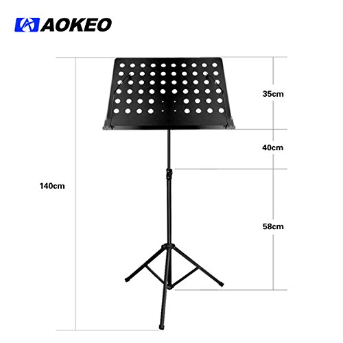 -. Brand : aokeo -. EAN : 0859830006542 -. Feature : Extremely lightweight and easily portable for any occasion / The height is adjustable for standing up or sitting down (28 to 48 inches) / Music sheet tray can tilt 180 degrees for maximum flexibility; tall, wide, and deep enough to hold a three-ring binder; magnetic for easily securing loose-leaf sheet music / *NOTE: Laptop and music sheets are NOT INCLUDED* / Tough and sturdy, Aokeo's brand accessories are built to last -. IsAutographed : 0 -. IsMemorabilia : 0 -. Label : Aokeo -. Manufacturer : Aokeo -. PackageQuantity : 1 -. ProductGroup : Musical Instruments -. ProductTypeName : INSTRUMENT_PARTS_AND_ACCESSORIES -. Publisher : Aokeo -. Studio : Aokeo -. Title : Aokeo Adjustable Music Stand -. UPC : 859830006542