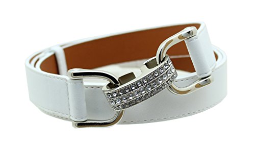 -. Title : Womens Thin Skinny Edge Stitched Leather Belt Rhinestone Buckle - Adjustable Size 27" to 45"