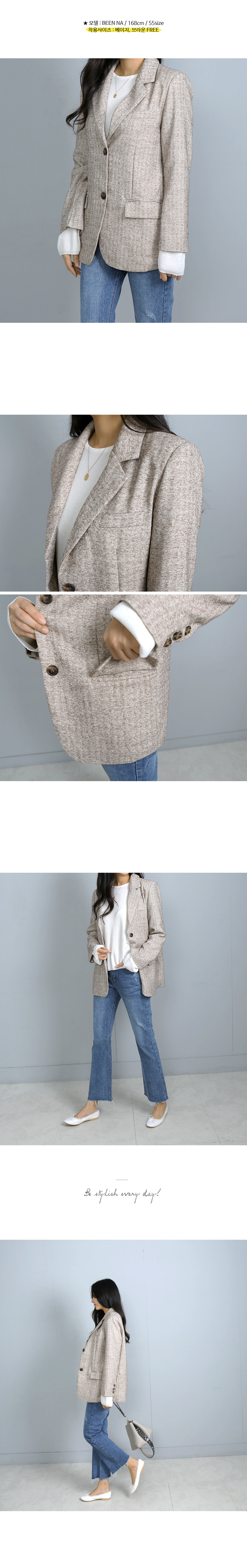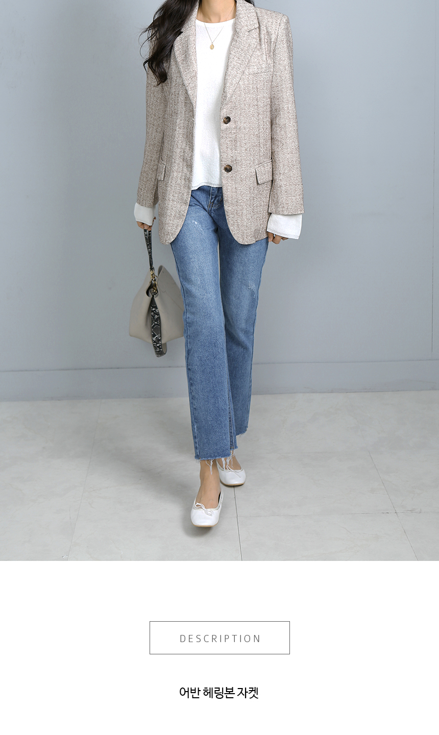 힙을 덮는 길이감의 투버튼 자켓이에요