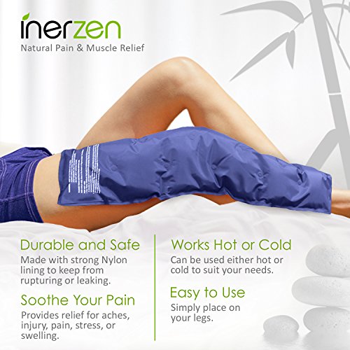 Inerzen Hot or Cold Full Leg Sports Therapy Gel Pad - Microwavable, Freezable, Reusable - Relief for Muscle Pain, Tension, Sprains, Cramps, Stress, Swelling, and more