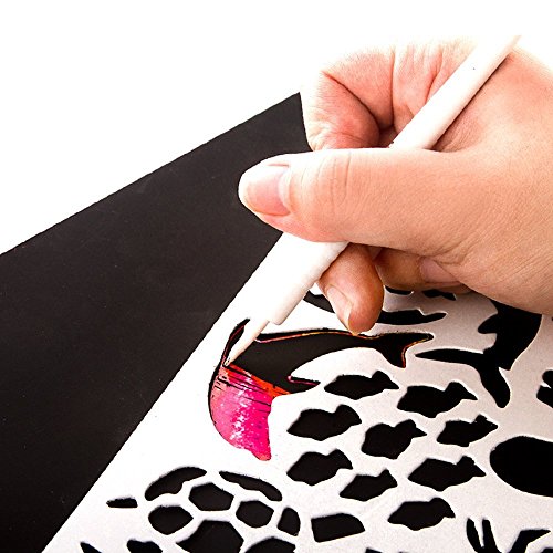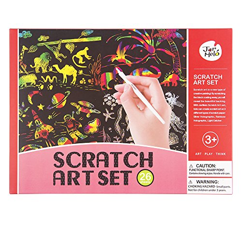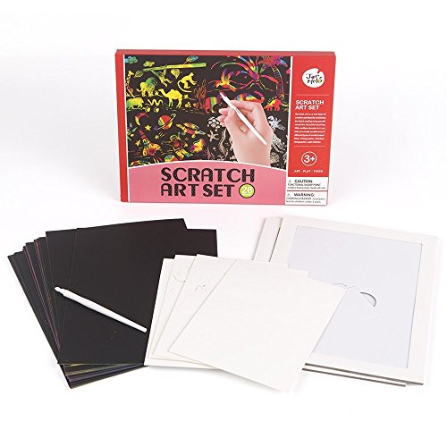Product DescriptionIncludes 26 assorted scratch art boards, 4 stencils (50 patterns), 1 stylus tool and 2 easel frames.0