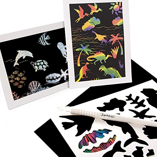 Jar Melo Combined Scratch Art Set: 26 Boards, 4 Stencil Sheet, 1 Stylus Tools, 2 Frames; Christ...