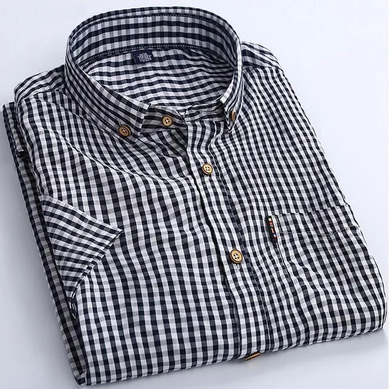 Description:Broadcloth Men Shirt Plaid Casual Business Long Sleeve Slim Fit