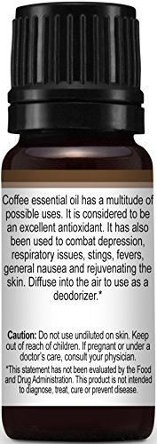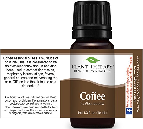 -. Feature : Botanical Name: Coffea arabica L / Aromatic Scent: Coffee Essential Oil smells just like a fresh brewed pot of coffee. It is both warming and invigorating. / 100% Certified Pure, Therapeutic Grade Essential Oil- no fillers, additives, bases or carriers added. / Packaged in dark amber glass bottle with euro style dropper cap. / For your convenience all Plant Therapy Essential Oils have an oil identification sticker on the cap. This is especially beneficial if you use a top load carrying case.