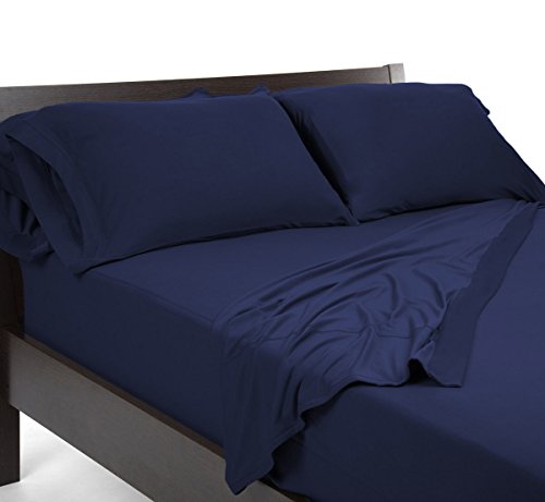 NJSR Textiles 600 Thread Count 100% Egyptian Cotton Italian Finish 1 Pc Fitted Sheet (+10 Inch) Pocket Length Queen Bed, Navy Blue Solid