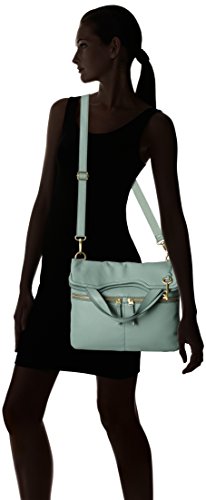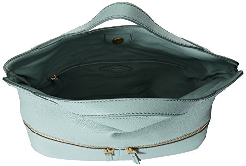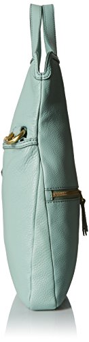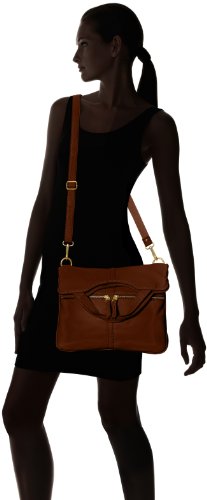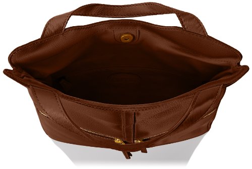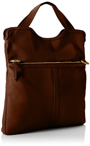 Pebbled-leather tote bag featuring dual top handles with foldover front