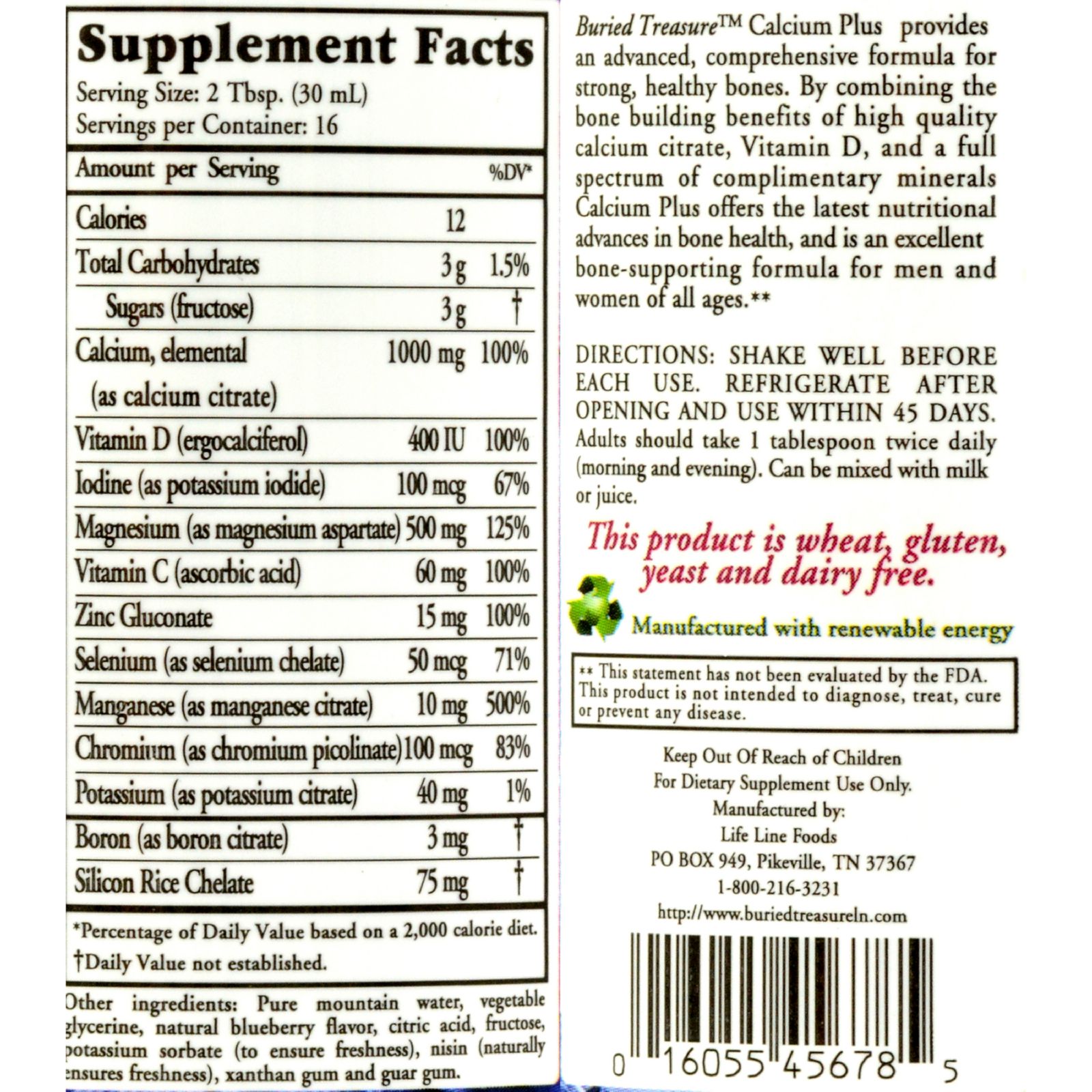 | Buried Treasure Calcium Plus Blueberry Description: Vegetarian Safe Promotes Increased Bone Density and Helps to Prevent Osteoporosis Buried Treasure Calcium Plus provides an advanced, comprehensive formula for strong, healthy bones. By combining the bone building benefits of high quality calcium citrate, soy isoflavones, herbs, and a full spectrum of complimentary minerals, and Vitamin D, Calcium Plus offers the latest nutritional advances in bone health, and is an excellent bone-supporting formula for men and women of all ages.