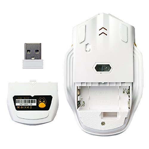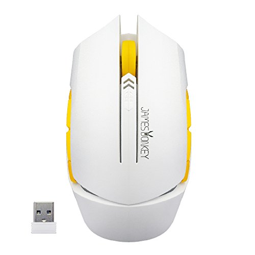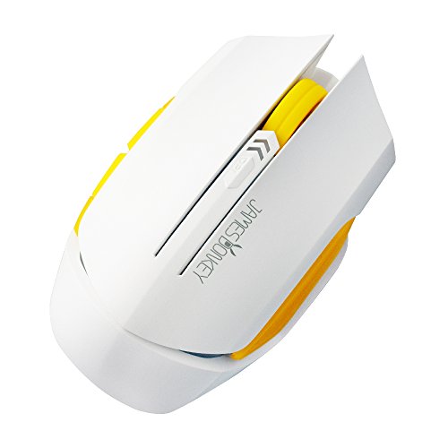 AFUNTA Wireless Gaming Mouse 6 Buttons 2000 DPI Full Size Game Mice with USB Transmitter for PC Laptop Desktop Tablet Windows 10/8/7/XP MAC Android Working distance up to 15m - White+Yellow