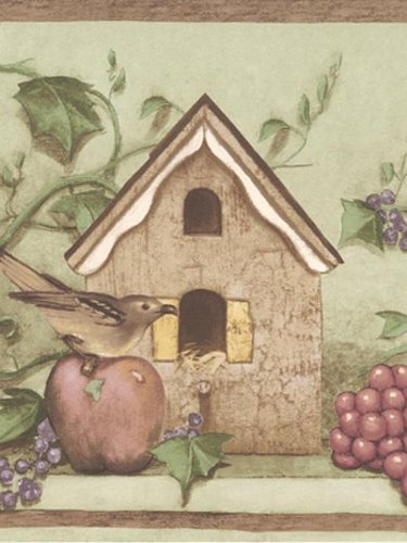 Birds Birdhouses Gardening Wallpaper Border - 41776460…