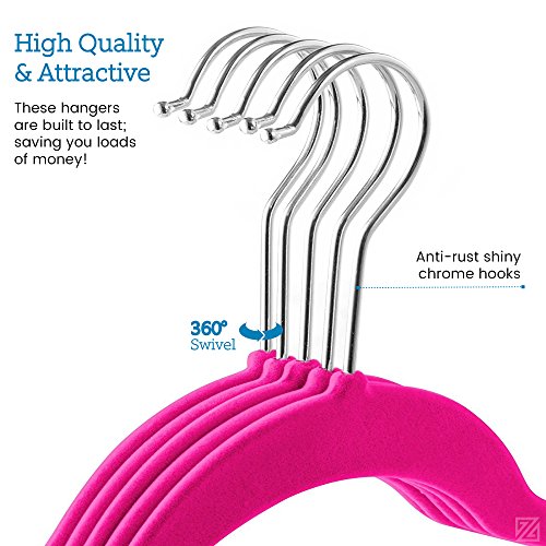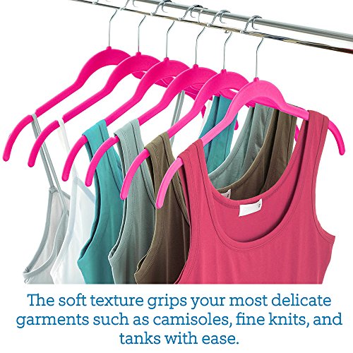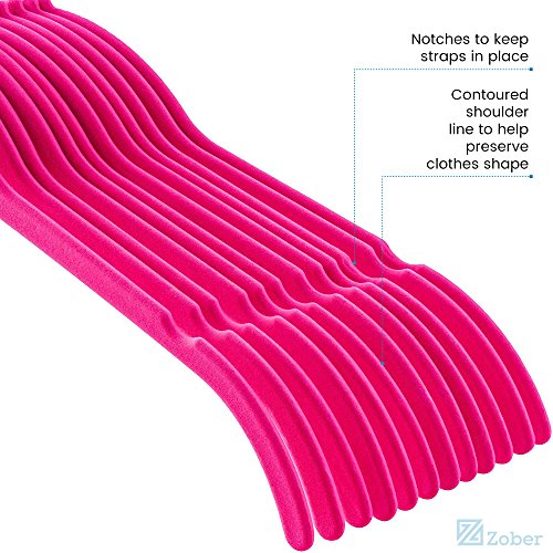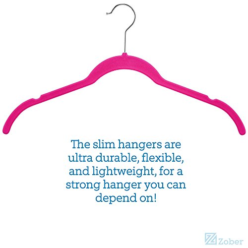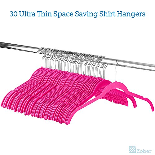-. Feature : Zober velvet non slip hangers are the hassle free way to store and organize shirts, blouses, dresses, sweaters and more! The slim hangers are ultra durable, flexible, and lightweight, for a strong dependable hanger that will last for years to come! / The soft texture of the velvet clothes hangers grips delicate garments such as camisoles, fine knits, and tanks with ease. / Free up to 50 percent more space on a garment rack with the ultra thin profile of these space-saving velvet hangers. / The shoulder line on the Pink velvet hangers is contoured to help preserve clothes shape and features precisely-cut notches for keeping thin or spaghetti straps in place. / A 360 degree swivel hook allows users to hang and access clothing with ease. The hook on the suit hangers is made of heavy duty stainless steel and finished in chrome for a shiny rust and corrosion resistant finish!