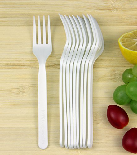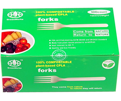 GreenWorks 100% Biodegradable and Compostable CPLA Cornstarch Disposable Cutlery Utensils Flatware,100 Ct 7" Heavyweight Forks
