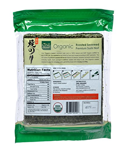 ONE ORGANIC Sushi Nori Premium Roasted Organic Seaweed (50 Full Sheets)