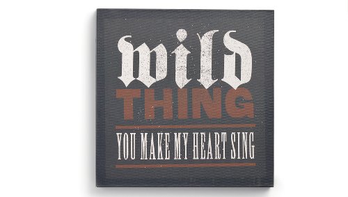 Feature : This canvas box sign measures 12" x 12" and is 1.5" in depth / 12" x 12" and is 1.5" in depth / Sign reads: Wild thing, you make my heart sing / Sign has open back hanger, can be mounted on the wall, displayed on an easel or stand up against a wall on a flat surface / Bring your wall to life with famous song lyrics