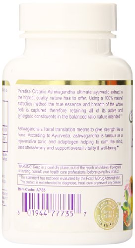 Paradise Herbs Ashwagandha 1.5% With Anolides Vegetarian Capsules, 60 Count