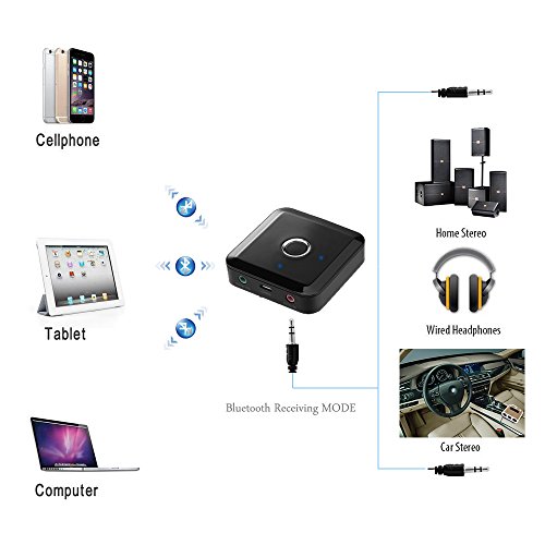 Multiple functions: Under Bluetooth audio transmitter mode, send voice to two Bluetooth headsets (or Bluetooth speaker), etc.