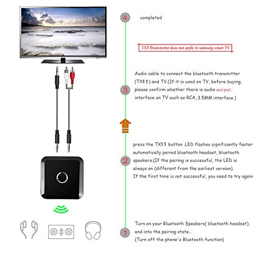 YETOR 4.1Bluetooth Transmitter /receiver for TV PC MP3 MP4 laptop/ Household speakers Car stereo RCA or 3.5MM input jack can pairing 2 bluetooth headsets speaker Simultaneously CSR chip inside