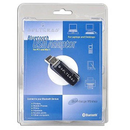 -. Binding : Electronics -. Brand : Solteras -. EAN : 0769118363642 -. Feature : Solteras Bluetooth v1.1 Class 2 USB Adapter General Features: Black color Bluetooth v1.1 compliant / USB 1.1 interface Operating range: 33 feet (10 meters) Up to 721 Kbps transfer rate / LED status indicator Supports up to seven Bluetooth devices at once / Supports Microsoft Windows XP/2000 and Apple Mac OS X Includes BlueOpal software / Allows for transfers, printing, synchronizing, fax, and networking -. Label : Solteras -. Manufacturer : Solteras -. MPN : STBIOBUSOPARSM -. PackageQuantity : 1 -. PartNumber : STBIOBUSOPARSM -. ProductGroup : PC Accessory -. ProductTypeName : COMPUTER_ADD_ON -. Publisher : Solteras -. Studio : Solteras -. Title : Solteras Bluetooth v1.1 Class 2 USB Adapter -. UPC : 769118363642
