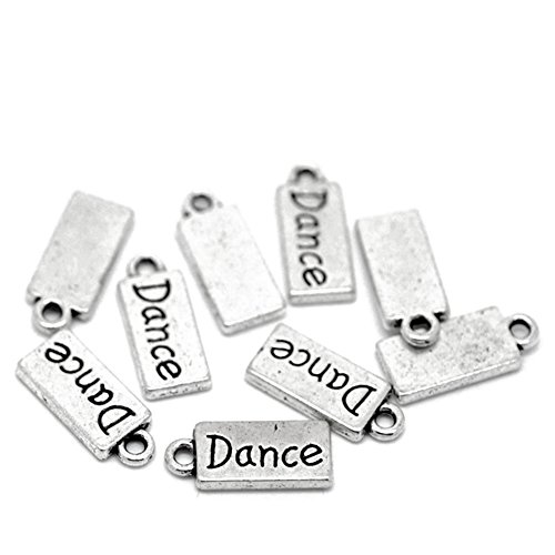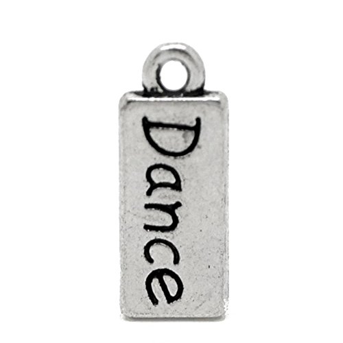 ZARABE 50PCs Silver Tone "dance" Rectangle Charm Pendants 17x7mm(5/8"x2/8")