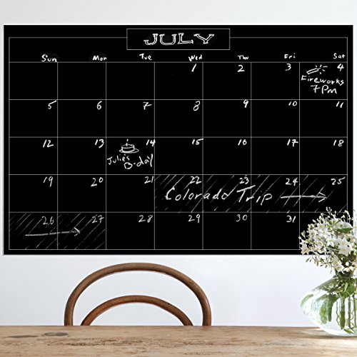 - Black chalkboard wall decal pre-printed with gridlines for you to fill in the month, days and dates.