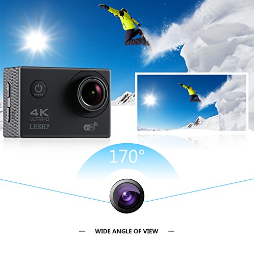 - 100 Feet(30m) Waterproof Camera: LESHP Action Camera is designed to withstand extreme environments. Equipped with IP68 waterproof case,durable waterproof to 100 Feet (30m). Please ready to capture all your details of adventures, interesting selfies and satisfying videos. Best for water sport such as swimming, surfing, diving, etc.