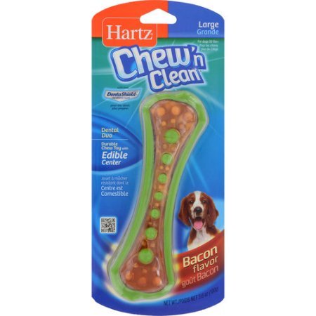 Studio : Hartz Publisher : Hartz Binding : Misc. Product Description This safe and long-lasting chew has a durable nylon shell combined with a tasty bacon flavored treat. Not only does this toy satisfy a dogs natural desire to chew, it also gently massages their gums while helping to minimize plaque and tartar using our patented ingredient DentaShield. 0