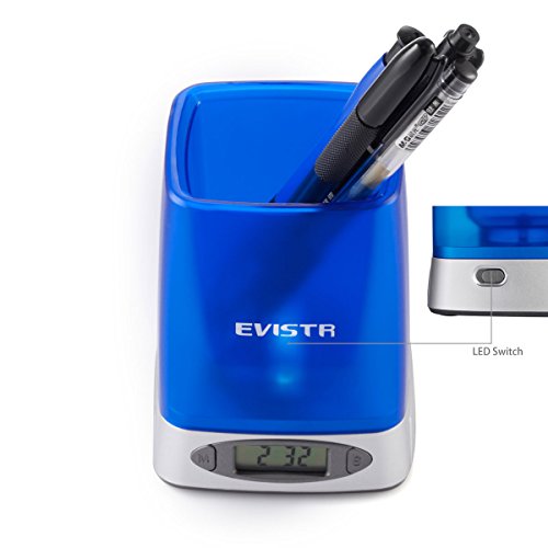 Evistr Pencil Holder with Digital Clock and Decor Lights Pen Holder for Office Desk Study Room Desk Supplies Organizer