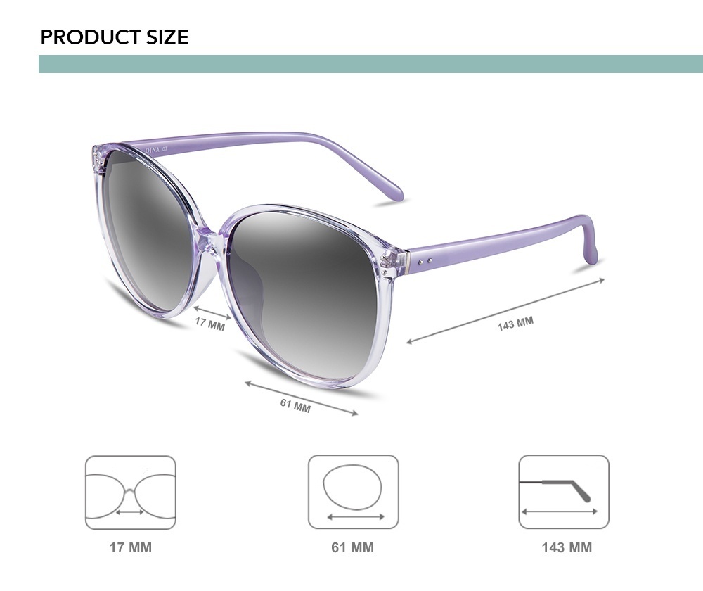 Angkat gayamu dan coba sesuatu yang baru dengan kacamata QINA. Frame kontemporari ini memiliki sentuhan yang stylish dengan bentuk lensa CATEYE. Tersedia dalam warna PURPLE dan lensa ABU ABU POLARIZED menawarkan sentuhan akhir yang unik dan kualitas yang luar biasa dengan proteksi UV 400 untuk melindungi mata dari efek berbahaya matahari. Dikirim dengan kantong designer premium yang unik dan colorful, serta kain pembersih GRATIS