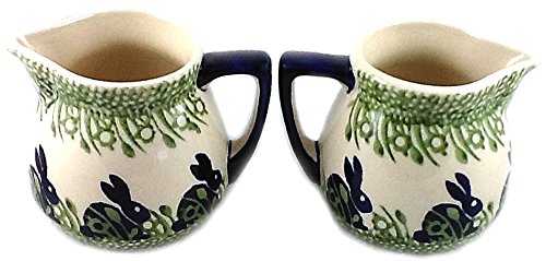 Studio : Manufaktura Publisher : Manufaktura Product Description Offered is a set of 2 beautiful Polish pottery Manufaktura creamers in the Bunny Rabbit pattern. This charming set will be perfect for cream or milk for your coffee, maple syrup for your pancakes or waffles or French toast and will keep hot fudge warm for your ice cream sundae. You'll find lots of uses for this set of creamers. 0