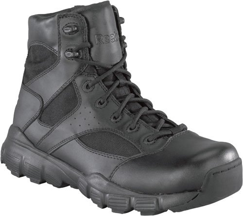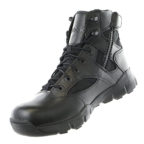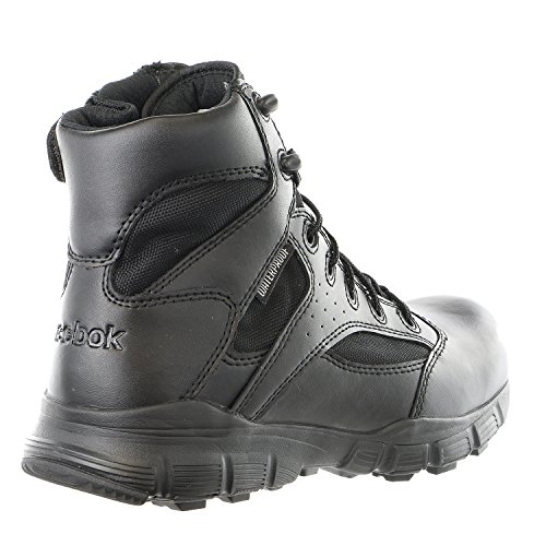 Studio : Reebok Publisher : Reebok Binding : Apparel Product Description Take on the day in the dependable Dauntless 6" boots from Reebok Duty.Waterproof leather and ballistic nylon upper in a tactile boot styleLace-up front, padded tongue and collarInside zipper ensures an easy slip-on construction6 inch shaftSoft toeNylon mesh lining, removable shock-absorbing insoleAegis Microbe Shield(TM)EVA cushioning midsoleElectrical hazard protectionDual density, rubber traction outsole 0
