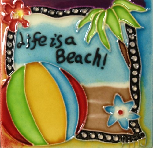 Continental Art Center SD-135 4 by 4-Inch Life Is A Beach Ceramic Art Tile