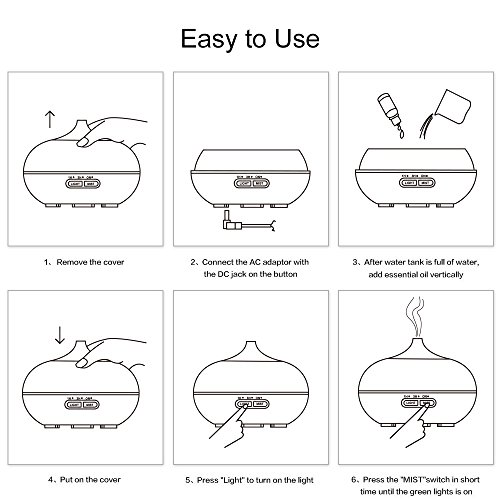 Select between 7 soothing colors, to match your mood or décor of the room. Runs quietly and can also be set to 4 Timer Settings( 60mins/180mins/360mins/on),suitable to your needs.When time is up or there is no water, it will turn off automatically