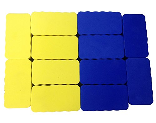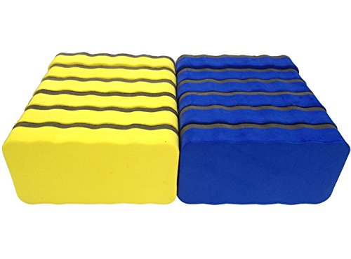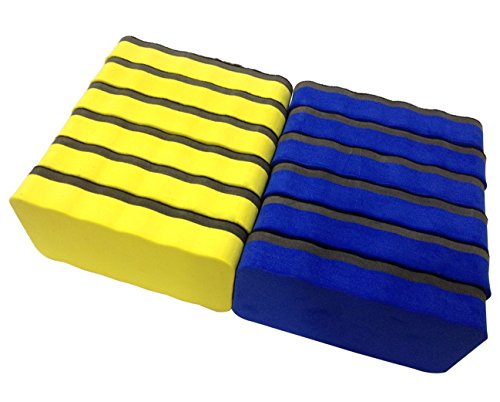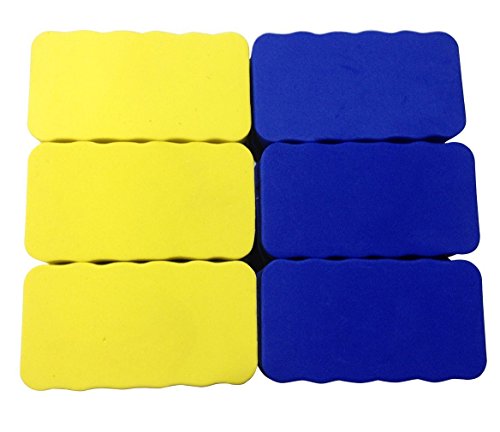 SUPER PREMIUM- Package of 12 erasers (6 blue and 6 yellow), 2.2 x 4 inches every one. clean any large or small board easily, no need for sprays or cleaners. Eco friendly, non-toxic, no smell.