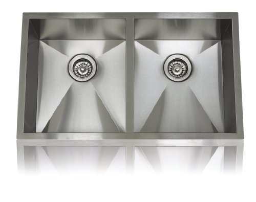 Lenova SS-0Ri-D3 Zero Radius Stainless Steel Equal Double Bowl Under-Mount Kitchen Sink, 17 and 17-Inch Bowls