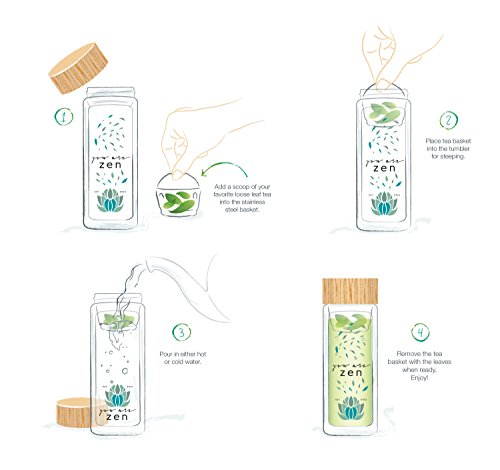 ☼ VERSATILITY: TEA, COFFEE, FRUITS, HERBS, DETOX - use as a Tea Tumbler with infuser: try EarlGrey, green, redbush or any loose leaf tea. Use as a Travel Mug, Fruit Infuser or simply a Water Bottle: keeping hydrated is fun and possibilities are endless. With the Zen Tumbler life is filled with taste!
