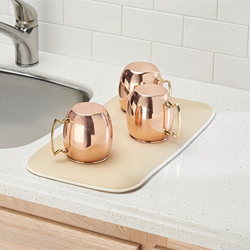 mDesign Mini Reversible Counter and Dish Mat for Kitchen Dish Drainer - Pack of 2, Wheat/Ivory