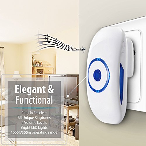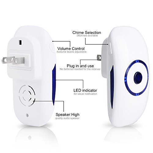 - 36 Different Ringtones - The receiver with 36 different ringtones for personal preferences, 4 level volume for choice, LED indicator, It can be successfully used for your home, office, shop, hotel or other buildings.