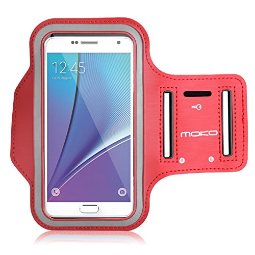Galaxy S7 Armband, MoKo Premium Sports Exercise Armband for Running, Workouts or Any Fitness Activity, Key Holder & Card Slot, Sweat-proof, BLACK (Compatible with Cellphones up to 5.2 Inch)