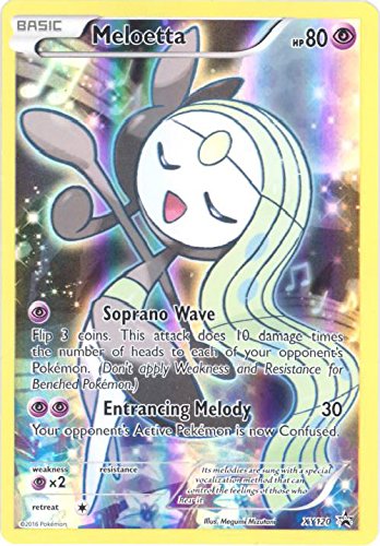 -. Binding : Toy -. Brand : Pokemon Cards -. EAN : 0643380545961 -. Feature : A single individual card from the Pokemon trading and collectible card game (TCG/CCG). / This is of Promotional rarity. / From the XY Black Star Promos Mythical Box set. / You will receive the Holo version of this card. -. IsAdultProduct : 0 -. Label : Pokemon -. Manufacturer : Pokemon -. ProductGroup : Toy -. ProductTypeName : TOYS_AND_GAMES -. Publisher : Pokemon -. Studio : Pokemon -. Title : Pokemon - Meloetta (XY120) - XY Mythical Box Black Star Promos - Holo -. UPC : 643380545961