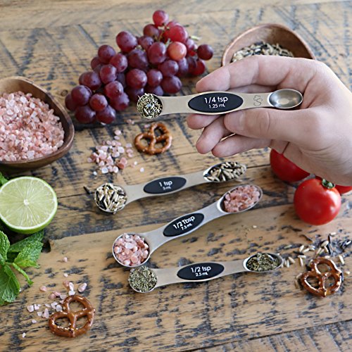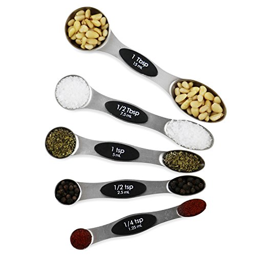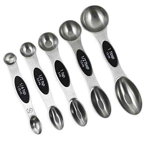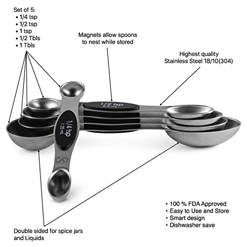 Samvi Magnetic Measuring Spoons set of 5 Stainless Steel Double Sided for Baking and Cooking Home and Kitchen