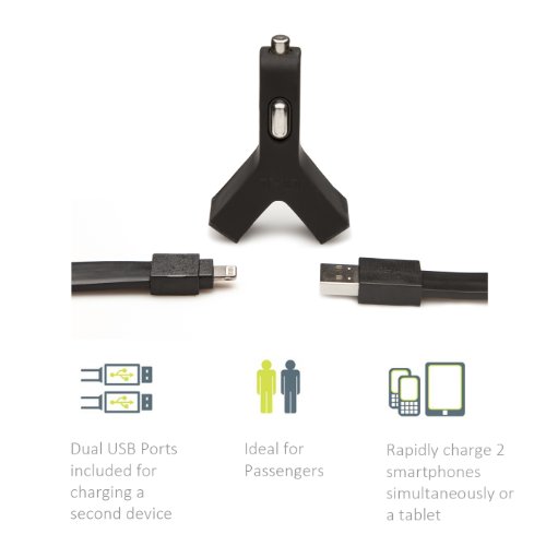 TYLT Y-Charge 2.1A USB Car Charger Dual Port for Charging Two Devices With Lightning Cable for iPhone 5/5C/5S/6/6 Plus - Black